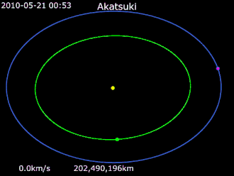 - ^ "AKATSUKI: Orbit successfully controlled". PLANET-C Team/JAXA. 5 August 2015. Retrieved 10 September 2015.