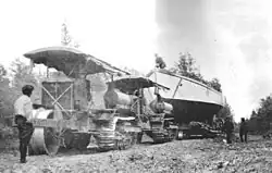 Aklavik was built in Vancouver, then shipped, by rail, to Fort McMurray, then the northernmost terminus of the North American railgrid. Until the railgrid was extended to the riverport of Hay River, on Great Slave Lake, every vessel operating on, or transiting, the Mackenzie River, was shipped to Fort McMurray, then proceeded to a portage around the extensive rapids on the Slave River, near Fort Smith.[2] Aklavik was towed from Fort McMurray to the portage, without any engines. Used engines were installed after she transited the portage.