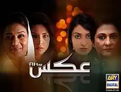Aks is a 2012 Pakistani drama serial which aired on ARY Digital every Wednesday since 29 August 2012.[1] The serial is directed by Nadeem Siddiqui and written by Sarwat Nazir, starring Zhalay Sarhadi, Mohib Mirza, Saba Hameed, Aiza Khan and Naila Jaffri.[2] The serial was last aired on 5 February 2013. It was also aired in India on Zindagi under the title Katha... Do Behnon Ki.