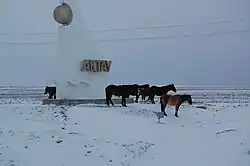 The name of the city, meaning "white hills", comes from the hills that separate Mangyshlak Peninsula and Buzachi Peninsula.[5] From 1964 to 1991, the city was named Shevchenko, after the Ukrainian poet Taras Shevchenko, who was exiled nearby in a settlement about 100 kilometres (62 mi) to the northwest.[5][6]