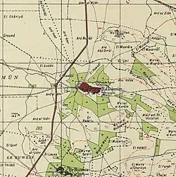 In 1875, al-Damun was prosperous and had roughly 800, mostly Muslim inhabitants and two mosques. In addition to the possible tomb of Dhul-Kifl, there was a shrine dedicated to a certain Sheikh Abdallah on an adjacent hill. An elementary school for boys was founded by the Ottomans in 1886.[8][16][17] A population list from about 1887 showed that Khirbet al-Damun had about 725 inhabitants, all Muslims.[18]