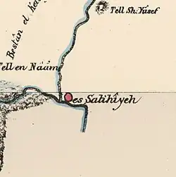 Al-Salihiyya (Arabic: الصالحية) was a Palestinian Arab village populated by people traditionally associated with the Ghawarna, a generic exonym denoting inhabitants of the drainage plains of the Hula Valley.[5] It was depopulated during the 1948 War on May 25, 1948, by the Israeli Palmach. It was located in the Safad Subdistrict, 25 km northeast of Safad, at the intersection of the Jordan River and Wadi Tur'an.