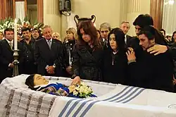 Her body was placed on display at the National Congress building in Buenos Aires for the public to pay their respects, and President Fernández de Kirchner ordered three days of national mourning.[30][33] Thousands had queued by the end of the day.[32][34]