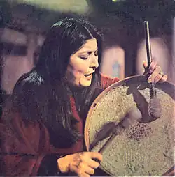 In the early 1970s, Sosa released two concept albums in collaboration with composer Ariel Ramírez and lyricist Félix Luna: Cantata Sudamericana and Mujeres Argentinas (Argentine Women). She also recorded a tribute to Chilean musician Violeta Parra in 1971, including what was to become one of Sosa's signature songs, Gracias a la vida.[4][11] She further popularized of songs written by Milton Nascimento of Brazil and Pablo Milanés and Silvio Rodríguez both from Cuba.[4] Throughout the decade, she released albums such as Hasta la Victoria in 1972 and Traigo un Pueblo en mi Voz in 1973. They featured songs like "Cuando tenga la tierra", written by Ariel Petrocelli and Daniel Toro, which tackles political and social issues like wealth and land inequality.[12][13] During the 1970s she was a part of two films by the director Leopoldo Torre Nilsson: El Santo de la Espada in 1970 and Güemes, la tierra en armas in 1971, in which she portrayed Juana Azurduy de Padilla, the guerrilla military leader who fought for Argentine independence.[12][14]
