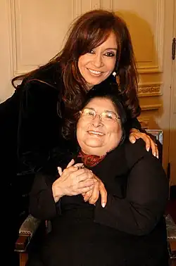 Sosa in 2005, with Argentina's then–First Lady (later president from 2007 to 2015), Cristina Fernández de Kirchner