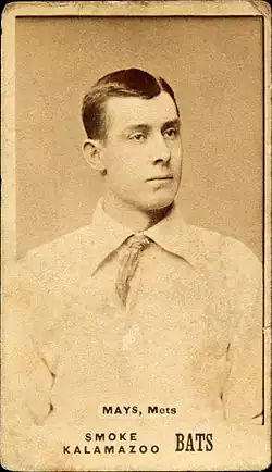 Albert C. Mays (May 17, 1865 – May 7, 1905) was an American baseball pitcher. He played five seasons in Major League Baseball for the Louisville Colonels (1885), New York Metropolitans (1886–1887), Brooklyn Bridegrooms (1888), Columbus Solons (1889–1890), all in the American Association.[1] In 1887, he appeared in a career-high 52 games, threw 50 complete games, and led the American Association that year with 34 losses and 232 earned runs allowed.[1] Mays concluded his pitching career in the minor leagues, including stints with Erie (1891, 1893, 1894), Wilkes-Barre (1892), and Peoria (1892).[2]