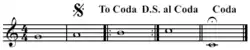 - D.S. al coda instructs the musician to go back to the sign, and when Al coda or To coda is reached jump to the coda symbol.