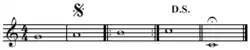 In music notation, dal segno (UK: /dæl ˈsɛnjoʊ/, US: /dɑːl ˈseɪnjoʊ/, Italian: [dal ˈseɲɲo]), often abbreviated as D.S., is used as a navigation marker. Defined as "from the sign" in Italian, D.S. appears in sheet music and instructs a musician to repeat a passage starting from the sign shown at right, sometimes called the segno in English.[1]