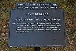 - ^ "[Law's] Alabama Brigade, 1862-1865." [Law's] Alabama Brigade, 1862-1865. Web. 16 May 2012. http://ehistory.osu.edu/uscw/features/regimental/alabama/confederate/lawsbrig.cfm.