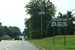 State Route 69 (SR 69) is a 280-mile-long (450 km) state highway that extends from the southwestern to the northeastern parts of the U.S. state of Alabama. The southern terminus of the highway is at an intersection with SR 177 at Jackson. The northern terminus of the highway is at an intersection with US 431/SR 79 at Guntersville.