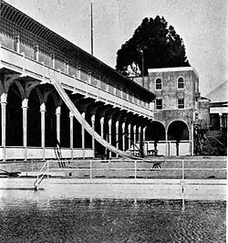 The first post office opened in 1854.[14] The first school, Schermerhorn School, was opened a year later in 1855 (eventually renamed as Lincoln School). The San Francisco and Alameda Railroad opened the Encinal station in 1864.[14] The early formation of the Park Street Historic Commercial District (or downtown) was centered near the train lines.[18] Encinal's own post office opened in 1876, was renamed West End in 1877, and closed in 1891.[14]