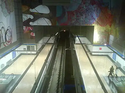 Alameda de Osuna [alaˈmeða ðe oˈsuna] is a station on Line 5 of the Madrid Metro, located in the Alameda de Osuna barrio. It is located in fare Zone A.[1]