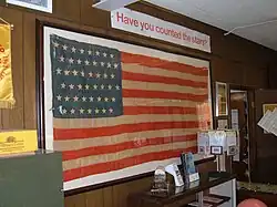 The provenance of the museum's 47-star flag is unknown, although it presumably was manufactured to celebrate New Mexico's entry into the Union.[2] The flag hung for many years in a bar in Blue Lake, California. The bar owner, Wade Topping, a former resident of Alamogordo, recognized the significance of the flag and donated it to the museum in 1999.[3][5]