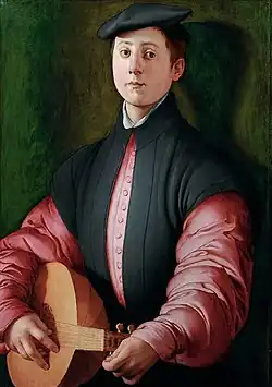 The work entered the Alana collection in 2011, it was first exhibited in 2010 in a Bronzino retrospective at Florence's Palazzo Strozzi organised by Carlo Falciani and Philippe Costamagna, the latter being a Florentine art specialist and curator at the Fesch Museum in Ajaccio. Under questioning, Costamagna stated that he had been shown the painting in Giuliano Ruffini's apartment on rue Saint-Honoré and confirmed its attribution to Bronzino due to several pentimenti[19] before it was exhibited in Florence and published twice with Carlo Falciani.[22] The curator also clarified that the painting seemed to belong to Spanish art dealers, who were also present when Costamagna viewed the work at Ruffini's. Ruffini was confirmed as the discoverer of the long-lost work and yet his name did not appear in the catalogue of the musée Jacquemart-André exhibition[19] - the provenance only mentioned Juan Lamella in London and H. Wirth in Zurich in 2009 before its acquisition by the Alana collection in 2011.[22] Representatives of the Alana collection later clarified that the work had been purchased in 2011 from the Derek Johns Gallery in London.[19]
