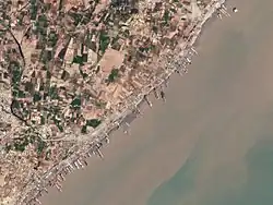 The Alang Ship Breaking Yard is the world's largest ship breaking yard, responsible for dismantling more than a third of retired freight and cargo ships salvaged from around the world.[1][2] It is located on the Gulf of Khambhat by the town of Alang, in the district of Bhavnagar in the state of Gujarat, India.[3][4][5][6][7][8][9]