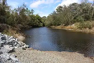 The Alapaha River is an intermittent river for part of its course. During periods of low volume, the river disappears underground and becomes a subterranean river. At approximately 2.3 miles (3.7 km) downstream from Jennings, Florida the Dead River enters the Alapaha River. It is a usually dry river bed with a number of sinkholes, including the Dead River Sink. During periods of low water flow, the Alapaha River downstream from the confluence of the Dead River and the Alapaha River flows upstream into the Dead River.