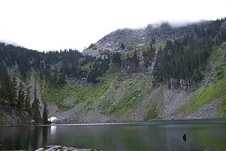 Alaska Lake is a freshwater lake located on the western skirt of Alaska Mountain at the border between King County and Kittitas County, Washington.[2] The lake is a popular area for hiking, swimming, and fishing. Other Alpine lakes are in the vicinity, including the Rampart Lakes a short distance south, at the base of Mount Margaret. To the east is Hibox Mountain.[3]