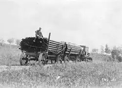 The ARC got busy quickly, by 1907 the commission had flagged 247 miles (398 km) of winter trails on the Seward Peninsula, built 40 miles (64 km) of road, upgraded 200 miles of existing trails, and cleared 285 miles (459 km) of new trail. A significant project was construction of a spur trail from Gulkana on the Valdez-Eagle route to the new mining camp of Fairbanks.[4] By 1922 these numbers had grown to 1,101 miles (1,772 km) of wagon road including 600 miles (966 km) of gravel surfaced roads, 756 miles (1,217 km) of winter sled roads, 3,721 miles (5,988 km) of permanent trail and 712 miles (1,146 km) of temporary flagged trail.[7] By 1932 the ARC had built and maintained 1,231 miles (1,981 km) of roads, 74 miles (119 km) of tram road, 1,495 miles (2,406 km) of sled roads, 4,732 miles (7,615 km) of trails, 329 miles (529 km) of temporary flagged trails, 26 airfields, and 32 shelter cabins. Total expenditures were in excess of $18 million.[4]