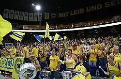 As the reigning German champion, Alba participated in the 2008–09 Euroleague. There, the team reached the Top 16, where it could not hold its ground against European elite clubs like FC Barcelona, Real Madrid, and Maccabi Tel Aviv. Yet, Alba had Europe's highest attendance at 11,264 spectators in the O2 World Berlin. In addition, the club gathered 14,800 spectators in the main round home game against Union Olimpija, a record crowd at a European Cup game in Germany. While at the national level in the cup final, Alba defeated Baskets Bonn. Later, Alba was beaten by the same team in the play-off semi-final series in five games.