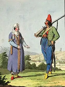 The Himarë region had been de facto independent from the Ottoman Empire, even if it had nominally submitted to it. In the 16th century, Himariots had served in the Spanish and Venetian armies. By 1735, Naples had also made its own Albanian guard.[1] Russian influence was felt across the Balkans, including the Albanians. Among those visiting Moscow to request humanitarian aid was Archbishop Gabriel in 1586,[2] Bishop Theophilus in 1587, the Patriarch of Ohrid Athanasius,[3] and Neofil of Korca.