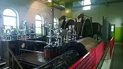 The engine house was built in 1903 to house a steam winder engine (which had previously been in use elsewhere). It is Grade II listed.[4] The engine, which remained in regular use until the pit's closure, is still in situ. It is an 1888 horizontal, simplex (i.e. non-compound) steam engine built by the Grange Iron Company of Durham City. The same company oversaw the re-siting of the engine in 1903, and they took the opportunity then of adding their latest patent steam expansion valves to maximize the engine's efficiency.