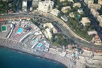 Albaro is located east of the center of Genoa. The neighborhood includes the southernmost part of a hill between the rivers Bisagno and Sturla which ends at the sea with high cliffs and small stony beaches, once accessible only through narrow crêuze.[3] Nowadays along the coast line runs the seafront named Corso Italia.