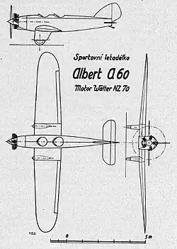 3. ^ a b "Nový francouzský letounek Albert A-60, czech (New French aircraft Albert A-60)". Letectví (Aviation) (5): 188. May 1930.