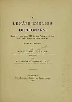 Anthony retired as a priest in 1886, after being employed as a farmer, and subsequently worked with Daniel Garrison Brinton on a dictionary of Munsee/Lenape, visiting Brinton in Philadelphia in 1886 and 1887 in his ancestral Delaware Valley, and Brinton also consulted with him on the Walam Olum, which he believed to be genuine. Anthony is the source of the etymology of Manhattan, which was named after a stand of hickory trees used for bows in the south of Manhattan.[1]