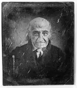 Gallatin was deeply interested in Native Americans, and he favored their assimilation into European-American culture as an alternative to forced relocation.[74] He drew upon government contacts to research Native Americans, gathering information through Lewis Cass, explorer William Clark, and Thomas McKenney of the Bureau of Indian Affairs. Gallatin developed a personal relationship with Cherokee tribal leader John Ridge, who provided him with information on the vocabulary and the structure of the Cherokee language. Gallatin's research resulted in two published works: A Table of Indian Languages of the United States (1826) and Synopsis of the Indian Tribes of North America (1836). His research led him to conclude that the natives of North and South America were linguistically and culturally related and that their common ancestors had migrated from Asia in prehistoric times. Later research efforts included examination of the language of certain native societies in Mexico and Central America.[75] In 1843, he co-founded the American Ethnological Society, serving as the society's first president.[74] Due to his studies of the languages of the Native Americans, he has been called "the father of American ethnology."[76]