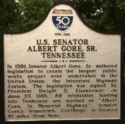 Plaque honoring Al Gore Sr. at a rest area along Interstate 40 in Tennessee