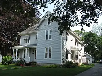 The Albert H. Wheeler House is a historic house at 219 South Street in Southbridge, Massachusetts. It was built in the late 19th century, and is an example of a modest Queen Anne Victorian. Its owner, Albert H. Wheeler, was a Civil War veteran and dry goods merchant with a shop in the Globe Village neighborhood. Wheeler died in the 1910s, and his widow lived in the house until at least 1928. It was eventually acquired by the American Optical Company and used for company housing.[2]