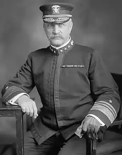 In the summer of 1917 — some three months after the United States entered World War I — Grant took over Battleship Force 1, Atlantic Fleet, with additional duty in command of Squadron 2 and Division 4. This position gave him the rank of vice admiral. During the last four months of 1918, Grant served as acting commander of the entire western portion of the U.S. Atlantic Fleet during the absence of Admiral Henry T. Mayo. He was awarded the Distinguished Service Medal for his World War I service.[1] In 1919, he became commandant of the Washington Navy Yard and superintendent of the Naval Gun Factory.