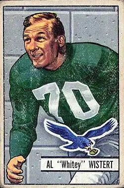 Albert Alexander "Ox" Wistert (December 28, 1920 – March 5, 2016) was an American professional football player who was an offensive tackle in the National Football League (NFL) for the Philadelphia Eagles. He played his entire nine-year NFL career for the Eagles and became their team captain. He was named to play in the NFL's first Pro Bowl as an Eagle. During most of Wistert's career there were no football All-star games, although he was named to the league All-Pro team four times.[1]