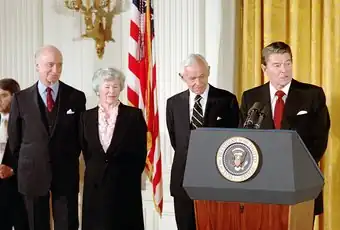 Wohlstetter and his wife, Roberta Wohlstetter, also counseled both Democratic and Republican administrations, including advisers to President John F. Kennedy during the Cuban Missile Crisis in 1962.[30] They received the Presidential Medal of Freedom from Ronald Reagan on November 7, 1985.