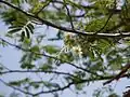 Albizia amara is a mid-sized, deciduous tree which resembles acacia without the thorns.[3] The bark of the tree is grey in color and is grainy and scaly.[3] The leaves consist of up to 15 pairs of side stalks and the leaflets are tiny and can consist of about 15–35 pairs.[3] The flowers are whitish-yellow powder puffs with long stamens and golden pollen.[3] The pods are flat and are about 20 cm long.[3] The leaves thin out during February–March and are renewed in April.[3] The flowers are present throughout May and the fruits ripen during October and November.[3] It is a host plant for Achaea janata.[4]