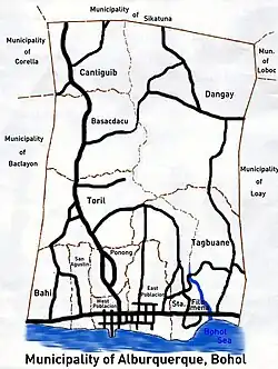 Alburquerque, officially the Municipality of Alburquerque (/ˈælbɜːrˌkɜːrki/ AL-bur-ker-ke; Cebuano: Munisipalidad sa Alburquerque; Tagalog: Bayan ng Alburquerque), is a municipality in the province of Bohol, Philippines. It had a population of 11,246 people at the time of the 2020 census.[5]