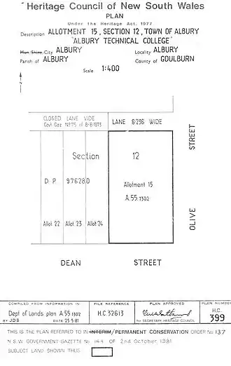 - ^ a b "Albury Technical College". New South Wales State Heritage Register. Department of Planning & Environment. H00137. Retrieved 28 May 2018.