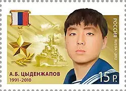 Aldar Batorovich Tsydenzhapov (Russian: Алда́р Ба́торович Цыденжа́пов; 4 August 1991 – 28 September 2010) was a seaman of the Russian Navy serving on the destroyer Bystry of the Pacific Fleet, who was the only fatal victim of a fire that broke out on the destroyer on 24 September 2010. He was posthumously awarded the Gold Star of the Hero of the Russian Federation for his role in extinguishing the fire and preventing an explosion.[1]