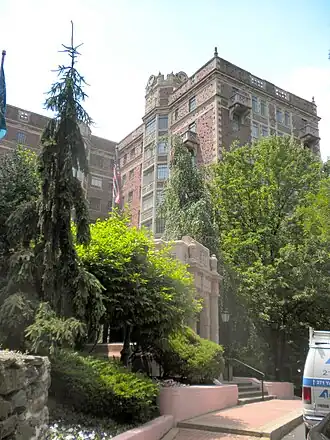 The complex overlooks the Wissahickon Valley section of Fairmount Park in the city's Germantown section. The buildings are surrounded by lawns and gardens, a rarity in the fairly urban setting. The complex features a unique indoor swimming pool which is lined with Mercer tiles and has a retractable roof. Alden Park was listed on the National Register of Historic Places in 1980 and on the Philadelphia Register of Historic Places in 1981. In the fall of 2015, a private firm bought the property for $59 million and began restorations.[3]