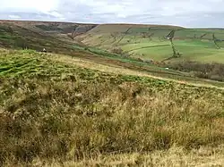 The Alden Valley is a small valley on the eastern edge of the West Pennine Moors, west of Helmshore in Rossendale, Lancashire, England. In the 14th century it was part of the Earl of Lincoln's hunting park. By 1840 it was home to about twenty farms, largely involved in cattle rearing, although most inhabitants were also involved with the production of textiles, which quickly developed during the Industrial Revolution into the building of textile mills. These have now been demolished and the valley is dominated by sheep grazing, with three working farms and a number of smallholdings.[1]