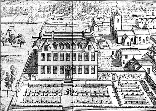 In 1676 ill-health forced Hale to resign as Lord Chief Justice and he retired to Alderley[17] where he died on Christmas Day the same year; he was buried in St Kenelm's churchyard.[18] His first wife Anne Moore, daughter of Sir Henry Moore and granddaughter of Sir Francis Moore, had borne him 10 children. He outlived all but the eldest daughter and the youngest son and, as a result, had taken some of his grandchildren into his care after the death of their parents. It was to these grandchildren that he left his estate,[19] while he bequeathed West End House to his daughter, Mary;[20] the latter property subsequently passed out of the family when it was sold by one of her descendants in the middle of the 18th century, around which time it was substantially rebuilt.[a]