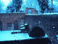 Historically, Aldersley was a rural area consisting of the odd farm or house in the manor of Tettenhall Clericorum. The hamlet was also known as Autherley. The main thoroughfare of Aldersley Road existed by 1377.[2] The coming of the canals changed things somewhat, with Aldersley the location of a major canal junction - that of the Birmingham Mainline Canal and the Staffordshire & Worcestershire Canal. A small hamlet was built at this junction for the people who operated it - with lock keepers cottages, a tollkeepers house and so on. Today, only the cellars and some brickwork remain of these historic buildings after they were demolished during the 1960s.