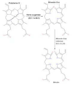 This shortened erythrocyte life-span and increased destruction links to hyperbilirubinemia which often presents as jaundice in the accumulation of bilirubin through excessive hemoglobin breakdown. Another side effect of cellular rupture both in the form of hemolysis and rabdomyolysis is excessive plasma concentrations of electrolytes such as potassium. This can lead to hyperkalemia, potentially of great cardiac concern.