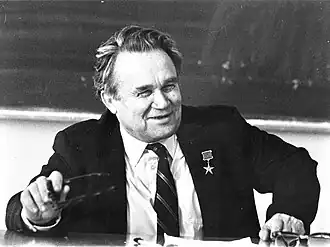Born in Amvrosiivka, Yekaterinoslav Governorate, Russian Empire (now, Donetsk Oblast, Ukraine). Samarskii studied from 1936 at Moscow State University, interrupted from 1941 to 1944 by voluntary military service in WW II — he was severely wounded in the Battle of Moscow.[2] In 1948 he received his Russian candidate degree (Ph.D.).[3] At the same time, he worked with Andrey Tikhonov on mathematical modeling of nuclear weapon explosions and electromagnetic fields in waveguides. In the 1950s Samarskii worked on finite difference methods and became the founder of a Soviet school in this field. In 1957 he received his Russian doctorate (higher doctoral degree) at the Keldysh Institute of Applied Mathematics with a dissertation on the solution of nonlinear problems of mathematics using finite difference methods. He was elected in 1966 a corresponding member and in 1976 a full member of the Russian Academy of Sciences. He was in 1953 a department head at the Institute of Applied Mathematics of the Soviet Academy of Sciences and a professor at Moscow State University, where he also received an honorary professorship. He founded the Department of Computational Modeling in the Faculty of Numerical Mathematics of Moscow State University and the Department of Mathematical Modelling at the Moscow Institute of Physics and Technology. From 1991 to 1998 he headed the Institute of Mathematical Modelling of the Russian Mathematical Modeling Committee (the Russian part of the International Association for Mathematics and Computers in Simulation (IMACS)).