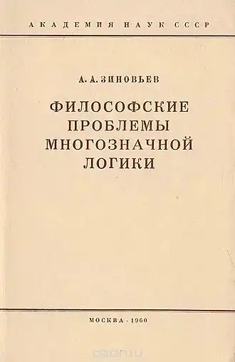 In the monograph "The Philosophical Problems of Multivalued Logic" (1960), Zinoviev reviewed almost all multivalued logical systems, analyzed the place, main results and applicability of multivalued logic in the logic and methodology of science.[26] In subsequent works, he developed his own concept of logic, which he called "complex logic". The problem of logic, according to Zinoviev, was not in formal mathematical calculus, but in the development of "methods of reasoning, proof, methods of scientific knowledge".[27] Zinoviev tried, firstly, to overcome the classical and intuitionistic versions of logic and, secondly, to expand the field of logic research based on the methodology of empirical sciences. The subject of logic is language, it does not discover, but invents specific rules of language — logical rules — and introduces them into language practices as artificial means of systematization.[3] This prescriptivist approach is close to the late Wittgenstein.[28] Zinoviev insisted on the universality of logic, claiming the independence of logical rules from the empirical areas of their application.[25] He denied ontological status to such concepts as a point or zero, considering them tools of knowledge; his approach in Western literature was characterized as logical nominalism. Zinoviev's pupil, the German logician Horst Wessel, noted that his logic was based on syntax, not semantics.[26]