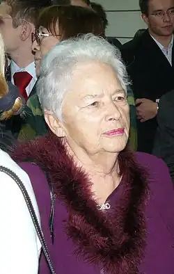 In 1951 she began half-year nursing course in the School of Nursing in Piła, in February of the following year she started working at City Hospital No. 2 in Poznan. She passed the nursing examination before the Examination Board in 1955.[4] Since 1956 she was employed in the hospital at Raszei in Poznan. In the Poznan protests in 1956, she went to the hospital despite having the day off. Hearing the cries of the injured, she went into the street to help victims. She was hit by a stray bullet in the midst of the shooting.[1] "I'll never forget the chanting crowd, the euphoria when the huge red communist flag fell from the roof of the building," she said years later.[2] When questioned at the trial, she confessed that the police were the first to shoot, contradicting the official version of events.