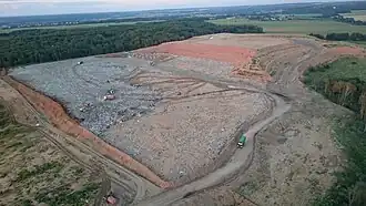 At the order of the Russian President the dump had to be closed and reclaimed along with others in Moscow Oblast in 2013. In February 2014, the Moscow Oblast's Ministry of Ecology reported the end of the dump exploitation because of the rated capacity depletion.[1] The same year, violating Russian law, the dump restarted its work, not being in the register of municipal solid waste disposal. Millions of tons of garbage started arriving from Moscow without any following of disposal process control. For the period from 2014 to 2015, a deep sand quarry turned into a huge hill. In 2014 about three million tons of waste was dumped, in other words twice the quantity as for the previous 20 years.