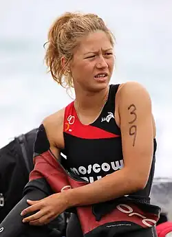 ![]() Alena Adanichkina preparing for the Elite European Cup triathlon in Antalya, 2011. | |