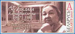 To commemorate the centenary of her birth, Aladava was featured on the 1 and 10 rubel coins.[8][9][10] She was also featured on a commemorative stamp.[11]