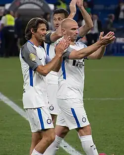 After his stint with Inter, he returned once again to Cesena in Serie B, where he remained until his retirement from professional football.[2] After his retirement, he still remained active as a footballer, and in 2010, he played in the Cervia Over-35 team as a midfielder, and during the 2012–13 season, he took part in the Umbro Second Division League with Eugubina Calcio.[1]